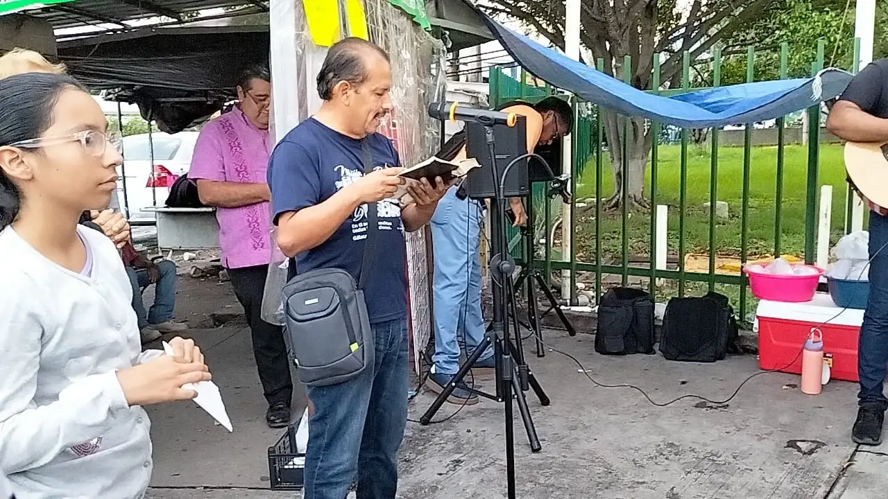 Alrededor de las 5 de la tarde del pasado lunes, los creyentes llegaron con el propósito de ser canales de la gracia divina. Con bocinas que elevaban melodías celestiales y aperitivos para compartir con las familias en espera, iniciaron un servicio que resonó como un eco del cielo.